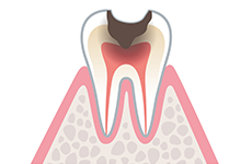 このC2段階のむし歯は、自然治癒することはなく、感染が神経に及んでしまう前に適切な治療が必要です。
