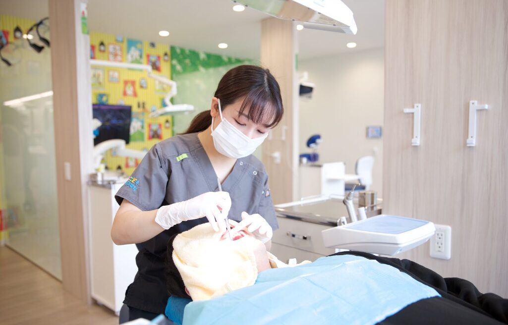 泉中央おとなこども歯科・矯正歯科では、患者様の痛みを最小限に抑え、安心して治療を受けていただくために、通常、局所麻酔を使用して感染してしまった部分を精密に削り取り、レジン(歯科用プラスチック)やセラミックなどの詰め物で修復する治療を行います。マイクロスコープやう蝕検知液も活用しながら、精密な治療を心がけています。